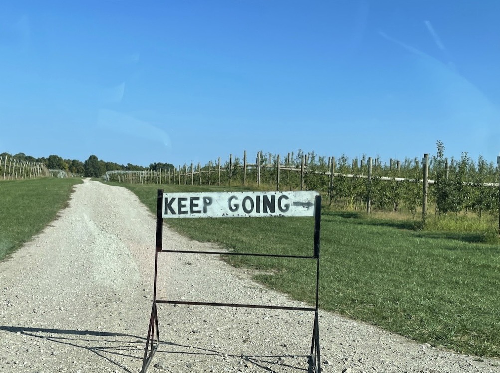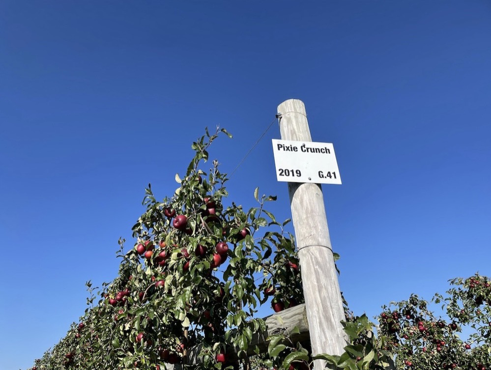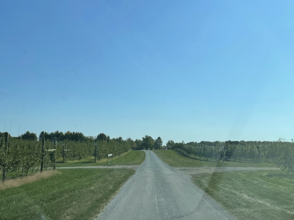 道なりに進んでリンゴ畑のすぐ近くまで車で乗り入れます。